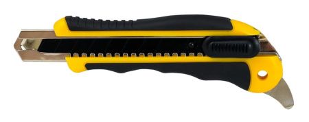 Предназначен для разрезания бумаги, картона и прочих материалов. Нож имеет автоматическую фиксацию лезвия. Замена лезвия осуществляется вручную через хвостовую часть ножа. Корпус ножа изготовлен из прочного пластика и частично обрезинен. Лезвие черного цвета, марка стали - sk5.